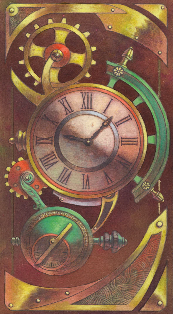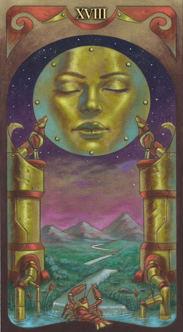 This illustrated tarot deck combines the aesthetic of Art Nouveau with classic 19th-century industrial steam-powered Steampunk imagery.
